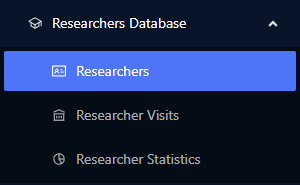 The Researchers Database module was designed to register researchers, their visits, and statistics related to their activities of the Research Room.
